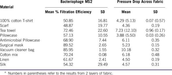 For general public use, there have been several studies exploring the use of improvised masks in pandemics. One study looked at improvising masks using everything from vacuum cleaner bags to tea towels, and compared them to the performance of surgical masks. Note that several materials performed nearly as well as a surgical mask. There are tradeoffs between the effectiveness of a mask and how easy it is to breathe through it. Antimicrobial pillowcases appear to be the best choice in this tradeoff, but many options exist. Even a basic cotton t-shirt cuts the number of viruses passing through the material in half. A cautionary note — while vacuum cleaner bags are the most effective option, several people have raised the concern that microfiber shards in the vacuum cleaner bag could cause their own health issues if inhaled, so that option should probably be avoided.